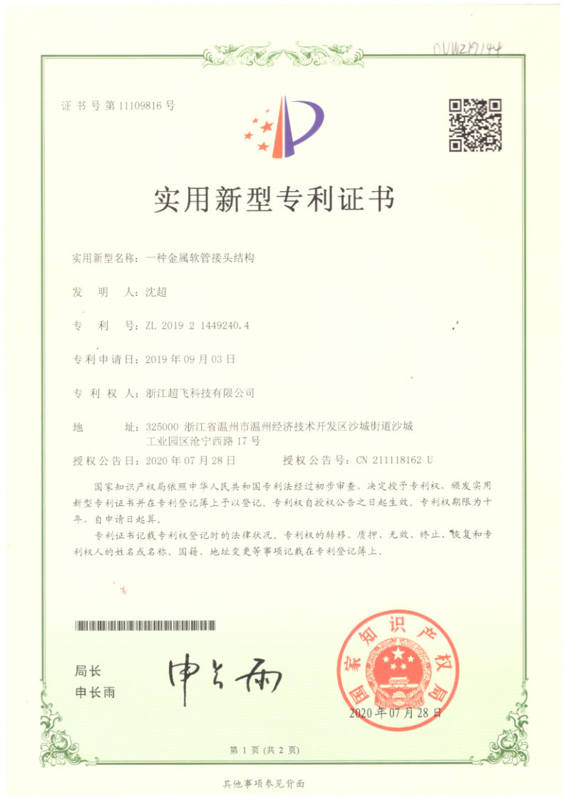 實(shí)用新型專利證書